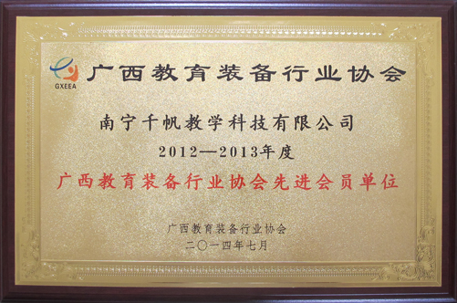 南寧千帆榮獲“2012-2013年度廣西教育裝備行業(yè)協(xié)會先進(jìn)會員單位”
