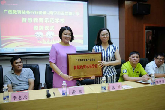 2018年6月27日上午,廣西教育裝備行業(yè)協(xié)會(huì)智慧教育示范學(xué)校掛牌儀式在南寧玉蘭路小學(xué)舉行,標(biāo)志著南寧市玉蘭路小學(xué)新時(shí)代教育信息化發(fā)展駛?cè)肓丝燔?chē)道,具有里程碑式重要意義。與會(huì)領(lǐng)導(dǎo)、全國(guó)教育裝備界的各知名企業(yè)代表、愛(ài)心人士、家長(zhǎng)代表、教師代表,一同出席了活動(dòng),見(jiàn)證了這一歷史性的時(shí)刻。